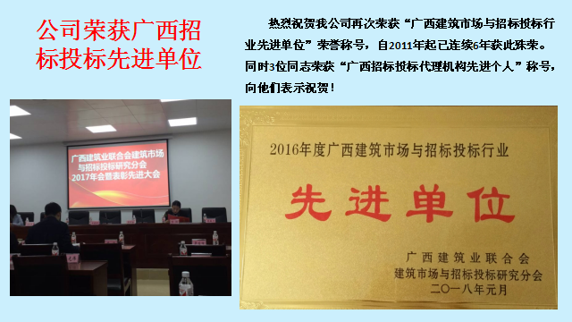 上一篇:熱烈祝賀我公司再獲廣西招標(biāo)投標(biāo)行業(yè)先進(jìn)單位